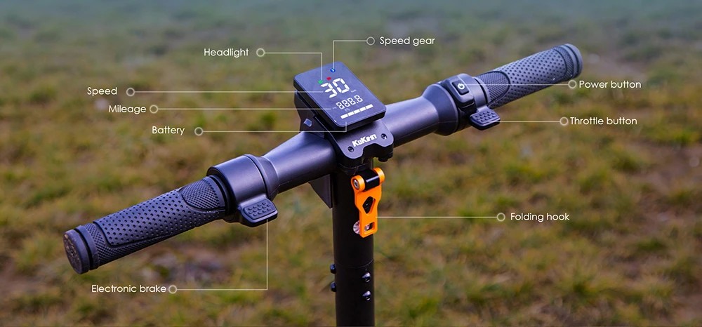 The folding e-scooter's large HD display provides all important data in real time.